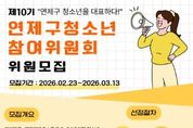 (포탈뉴스통신) 연제구청소년상담복지센터는 오는 3월 13일까지 '2026년 제10기 연제구청소년참여위원회' 위원을 공개 모집한다. 모집 인원은 15~20명 내외로, 서류 및 면접 심사를 통해 선발할 예정이다. 연제구에 거주하는 9~24세 이하 청소년이나 연제구 소재 초·중·고·대학교 재학생이라면 누구나 지원할 수 있다. 제10기 연제구청소년참여위원회는 다음 달 발대식을 시작으로 12월까지 활동한다. 위원들은 청소년 관련 정책과 사업은 물론, 지역 내 현안 해결에 대한 의견을 제안하고 자문·평가하는 역할을 맡게 된다. 선발된 위원에게는 위촉장과 명패가 수여되며, 활동 결과에 따라 우수 위원 표창 등의 혜택이 제공된다. 자세한 내용은 연제구청 홈페이지 또는 연제구청소년상담복지센터 홈페이지 공지사항에서 확인할 수 있다. [뉴스출처 : 부산시연제구]