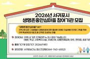 (포탈뉴스통신) 서귀포시는 2026년 두터운 생명존중사업의 일환으로 생명존중안심마을을 기존 3개소에서 6개소까지 확대 운영한다고 밝혔다. 생명존중안심마을은 지역사회 내 기관·단체가 위기에 처한 주민을 조기발견하고 전문기관에 의뢰·연계하는 지역 기반 자살예방 안전망 사업으로 지역 구성원이 함께 참여해 생명존중 문화를 확산하는데 목적이 있다. 생명존중안심마을 조성 사업은 '제5차 자살예방 기본계획'에 따라, 지자체 중심의 생명존중 안전망 강화하고, 생명존중안심마을을 단계적으로 확대해 2027년까지 전체 읍·면·동의 50%이상을 조성할 계획이다. 본 사업은 5개 영역의 기관, 단체가 5개 분야의 생명존중전략을 수행하는 구조로 운영된다. 참여가능 영역은 ▲보건(의료) ▲교육(학교) ▲복지 ▲지역사회(유통판매업 포함) ▲공공기관이며, 우리동네 생명존중에 관심있는 기관·단체는 누구라도 신청 가능하다. 생명존중안심마을 주요 참여 활동은 ▲자살예방교육(생명지킴이 양성) ▲고위험군 발굴·개입·연계 ▲생명존중 홍보·캠페인 ▲고위험군 맞춤형서비스 지원 ▲자살위해수단차단 등이다. 2025년까지 서귀포시 생명