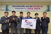 (포탈뉴스통신) 충북 진천군 상하수도사업소(소장 연성훈)는 진천군 장애인복지관(관장 이재성)에 후원금 300만원을 전달했다고 9일 밝혔다. 이번 후원은 2025년 상수도 분야 각종 평가에서 전국 최우수기관으로 선정된 성과를 거둔 것을 기념하고, 그 결실을 지역사회와 함께 나누기 위해 마련됐다. 군은 올해 상수도 분야에서 전국 2관왕을 달성하는 쾌거를 이뤘으며, 2001년 군 상하수도사업소 개소 이래 상수도 분야 최우수기관에 최초로 선정됐다. 연성훈 소장은 “상수도 현대화사업과 각종 시책의 체계적인 추진이 만들어낸 값진 결실”이라며 “앞으로도 철저한 맑은 물 관리와 효율적인 운영을 통해 군민에게 더욱 신뢰받는 상수도 행정을 실현해 나가겠다”고 말했다. 이재성 관장은 “의미 있는 성과를 지역사회와 함께 나누어 주신 데 깊이 감사드린다”며 “전달해 주신 후원금은 지역 장애인의 복지 향상과 자립 지원을 위해 소중히 사용하겠다”고 말했다. 한편, 군 상하수도사업소는 앞으로도 안정적인 수돗물 공급과 체계적인 시설 관리, 지속적인 서비스 개선을 통해 군민이 체감할 수 있는 물 복지 실현을 위해 최선