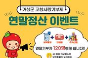 (포탈뉴스통신) 거창군은 연말정산 시기를 맞이하여 지난 10일부터 거창군 고향사랑기부자를 대상으로 연말정산 이벤트를 진행 중이다. 이번 연말정산 이벤트는 12월 31일까지 진행되며, 이벤트 기간 내 거창군에 10만원 이상 고향사랑기부를 한 기부자를 대상으로 총 120명을 무작위로 추첨해 추가 상품을 증정한다. 이벤트 참여방법은 고향사랑e음, 위기브 또는 농ㆍ축협 창구를 방문해 거창군에 10만원 이상을 기부하면 자동으로 응모된다. 당첨자 추첨은 4회에 걸쳐 진행되며, 당첨규모는 거창사과(2.5kg) 12명, 들기름(250ml) 20명, 거창하데이쌀(4kg) 28명, 누룽지(4봉) 60명으로 총 120명이다. 당첨자 발표는 △1차는 11월 24일 △2차 12월 8일 △3차 12월 19일 △4차 2026년 1월 2일에 진행되며, 회차별 당첨자에게는 개별 통보할 예정이다. 이남열 전략담당관은 “거창을 사랑하는 많은 분과 함께하기 위해 기부자가 많은 연말정산 기간을 맞이하여 이벤트를 시행하게 됐다”며 “뜻깊은 사업에 기부도 하고 세액공제에 답례품과 추가 선물까지 받을 수 있는 이번 이벤트에 많은 참여를 바란