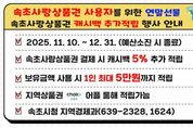 (포탈뉴스통신) 속초시는 지역사랑상품권 판매실적 우수 지자체로 선정돼 국비 2억 7천만 원을 교부받는다. 이에 따라 11월 10일부터 속초사랑상품권 사용 시 결제금액의 5%를 캐시백으로 적립하는 추가 행사를 진행한다. 적립 한도는 1인당 최대 5만 원이며, 행사는 오는 12월까지 진행되며 예산 소진 시 종료된다. 이번 행사는 지난 10월 29일부터 시행 중인 추가 환급행사의 연장선으로, 지역 소상공인 매출 증대와 시민 소비 촉진에 기여할 것으로 기대된다. 속초사랑상품권은 모바일 앱 ‘지역사랑상품권 chak’을 통해 구입할 수 있다. 또한 농협, 우리은행, 신협, 새마을금고, 우체국 등에서 즉시 카드 발급이 가능하며, 속초시 내 4,202개 가맹점에서 사용할 수 있다. 상품권은 구매 후 전액 미사용 시 7일 이내 환불이 가능하고, 충전금액의 60% 이상 사용 시 부분 환불도 가능하다. 유효기간은 구매일로부터 5년이다. 속초시 관계자는 “이번 추가 캐시백 행사는 전국적으로 우수한 판매실적을 인정받아 확보한 인센티브를 활용해 추진하는 것으로, 시민들의 적극적인 참여가 지역 상권 회복에 큰 힘
