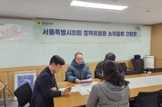 (포탈뉴스통신) 김용일 서울특별시의회 정책위원장(국민의힘, 서대문4)은 23일 11시 정책위원장실에서 법제과장, 법제정책팀장 등이 참석한 가운데 간담회를 갖고 22기 정책위원회 연구발표 및 워크숍 일정 계획 등을 논의하고 확정했다. 이날 간담회에서 김 위원장은 정책위원회 연구성과 공유와 연구역량 강화 등을 위해 지난 9일 전체회의에서 결정한 정책위원회 연구발표 및 워크숍 일정(3.19.~3.20.)에 대한 계획안을 마련했다. 먼저, 1일 차(3.19.(목))에는 연구발표회와 세미나를 개최하여 그동안 진행한 연구과제 발표와 향후 소위원회 활동 계획 등을 논의하고 2일 차(3.20.(금))에는 정책현장 방문활동 등을 실시할 예정이다. 김용일 정책위원회 위원장은 “연구성과 공유와 과제 발굴, 연구역량강화를 위해 내실 있는'연구발표회 및 워크숍'을 개최함으로써 서울 시정과 교육행정의 현안에 대해 실효적인 대안을 제시하도록 적극 노력하겠다.”고 밝혔다. [뉴스출처 : 서울특별시의회]