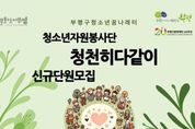 (포탈뉴스통신) 부평구청소년꿈나래터는 오는 26일까지 2026년도 청소년자원봉사단 ‘청천히 다같이’ 단원을 신규 모집한다고 밝혔다. 청소년자원봉사단은 부평구에 거주하거나 재학 중인 13~16세 청소년을 대상으로 운영되는 자치조직이다. 봉사단은 지역 사회 내 다양한 봉사활동을 직접 기획․운영하게 된다. 이번 모집을 통해 선발된 단원들은 4월부터 12월까지 활동하며 ▲봉사시간 인정 ▲우수활동자 수상 기회 등의 혜택을 받는다. 또한 ▲지역행사 부스 운영 ▲봉사활동 기획 및 운영 등 다양한 활동에 참여할 수 있다. 배재석 부평구청소년꿈나래터 센터장은 “청소년들이 주체적인 자원봉사활동을 통해 지역사회에 대한 관심을 높이고 함께 성장하는 계기가 되길 바란다”고 말했다. 청소년자원봉사단 모집 관련 사항은 전화로 문의하거나, 부평구청소년꿈나래터 누리집 및 카카오톡 채널에서 확인할 수 있다. [뉴스출처 : 부평구청소년꿈나래터]