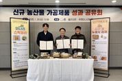 (포탈뉴스통신) 시흥시 농업기술센터는 지난 1월 30일 센터 내에서 지역 농산물을 활용한 ‘신규 농가공제품 개발 성과공유회 및 기술이전 업무협약식’을 열었다. 이번 행사는 지난 2025년 3월부터 12월까지 약 10개월간 시흥시 농업기술과와 지역 농가가 협력해 추진한 농산물 가공 제품 연구개발 성과를 공유하고, 개발 기술의 현장 적용 과 실용화를 촉진하기 위해 마련됐다. 이번에 개발된 제품은 총 2종이다. ▲‘감자누룽지과자’는 시흥 친환경 감자와 쌀, 연근을 최적의 비율로 배합해 바삭한 식감과 고소한 풍미를 극대화했다. ▲‘미나리스틱젤리’는 시흥 미나리를 추출해 영양성분을 가득 담아내면서도 과일 향을 더해 대중적인 입맛과 간편하게 섭취할 수 있도록 만든 제품이다. 두 제품 모두 지역 특산물의 영양을 유지하면서도 현대인의 입맛과 유행을 반영해 상품성을 높였다는 평가를 받았다. 시는 이날 업무 협약을 통해 연구 개발된 핵심 기술을 해당 농가에 이전하고, 오는 4월까지 제품 브랜드 및 포장재 개발, 주문자 상표 부착 생산(OEM) 업체 선정을 마무리할 계획이다. 이후 6월부터는 본격적인 제품 생산과 온오프라인 유통
