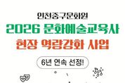 (포탈뉴스통신) 인천중구문화원(원장 박봉주)이 문화체육관광부와 인천광역시가 주최하고, 인천문화재단 인천문화예술교육지원센터와 한국문화예술교육진흥원이 주관하는 '2026 문화예술교육사 현장 역량강화 사업(인천)'에 6년 연속 선정되는 쾌거를 달성했다. ‘문화예술교육사 현장 역량강화 사업’은 문화예술교육사의 전문성 강화를 통해 지역의 문화예술교육 역량을 높이고, 주민들을 위한 우수한 문화예술교육 프로그램 개발과 운영을 지원하는 사업이다. 인천중구문화원은 지난 5년간의 성공적인 사업 운영 성과를 인정받아 올해도 본 사업에 연속 선정되며, 지역 문화예술교육의 거점으로서 입지를 공고히 했다. 특히, 오는 7월 예정된 인천시 행정체제 개편에 따라 ‘인천영종구문화원’으로의 새로운 출발을 앞두고 있어 그 의미가 더욱 남다르다. 올 하반기부터 인천중구문화원은 ‘영종구’로 거점을 이전하여 지역적 특성을 반영한 새롭고 다채로운 문화예술교육 프로그램을 선보일 계획이며, 이에 발맞춰 영종구에서 새롭게 호흡을 맞추며 프로그램을 기획·운영할 역량 있는 신규 문화예술교육사 채용 진행중에 있다. 인천중구문화원 박봉주