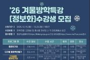 (포탈뉴스통신) 고성교육도서관은 12월 23일부터 31일까지 관내 초·중·고등학생을 대상으로 겨울방학 특강 수강생을 모집한다. 이번 겨울방학 특강은 1월 13일부터 1월 23일까지 8일간 운영된다. 2026년도 기준 초등학생을 대상으로 △주판 집중력 교실(초등 1~2학년) △수학 실력 키움반(초등 2~6학년) △상상 미술 실험실(초등 전 학년) 3개 강좌를 운영한다. 2026년도 기준 중·고등학생 대상으로 △문법 실력 빠짝 올리기 1개 강좌를 포함하여 총 4개 강좌를 운영한다. 고성교육도서관 누리집을 통해 신청할 수 있으며, 선착순으로 모집한다. 장지연 관장은 “작은 배움이 쌓여 큰 성장으로 이어지듯, 겨울방학 특강을 통해 의미 있는 방학을 채우길 바란다”라고 전했다. [뉴스출처 : 강원특별자치도고성교육도서관]