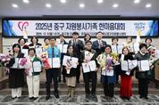 (포탈뉴스통신) 대전 중구는 8일 중구청 대회의실에서 중구 자원봉사센터(센터장 김진화) 주관으로 ‘2025년 자원봉사 가족 한마음대회’를 개최했다고 밝혔다. 이날 행사는 중구 자원봉사협의회 윤덕순 회장을 비롯한 자원봉사자 300여 명이 참석한 가운데, 한 해 동안 펼쳐진 자원봉사활동을 담은 영상을 시청하고 지역사회에 헌신한 우수 자원봉사자와 우수 봉사단체에 표창을 수여하는 등 참석자들의 큰 박수와 축하 속에서 진행됐다. 취약계층 밑반찬 나눔, 어르신 안부 살피기, 무료 세탁 봉사 등 지역 어려운 이웃을 위해 노력한 자원봉사자 25명은 중구청장 표창을, 22명은 중구의회 의장 표창을 수상했다. 단체 표창은 은행선화동 자원봉사협의회를 포함한 14개 자원봉사팀이 수상했다. 김진화 센터장은“오늘 한마음대회가 자원봉사자들의 노고를 격려하고 단합하는 시간이 됐기를 바라며, 자원봉사자가 안전하고 즐겁게 활동할 수 있는 환경 조성을 위해 최선을 다하겠다.”라고 말했다. 중구 관계자는“이웃에 대한 나눔과 배려의 정신으로 헌신적인 봉사활동을 펼쳐주신 회원들께 감사드리며, 앞으로도 구민이 함께 만들어가는 자원봉사 문화
