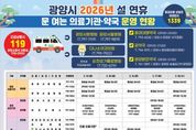(포탈뉴스통신) 광양시는 설 명절 연휴 기간 시민과 귀성객들이 안전하고 편안한 명절을 보낼 수 있도록 2월 14일부터 18일까지 5일간 ‘설 연휴 종합상황실’을 운영한다고 밝혔다. 이번 종합상황실은 ▲총괄반 ▲생활민원기동반 ▲재난상황반 ▲진료대책반 ▲일반민원처리반 등 총 5개 반, 하루 평균 39명이 근무하는 체계로 연휴 기간 총 195명의 인력을 투입해 운영되며, 각종 비상 상황에 신속하고 체계적으로 대응해 연휴 기간 발생할 수 있는 생활 불편을 최소화할 계획이다. 먼저 총괄반은 종합상황실 운영 전반을 총괄하며 각 반의 상황을 종합 관리하고, 연휴 기간 상황 유지와 신속한 의사결정을 담당한다. 생활민원기동반은 환경·도로·교통·수도·쓰레기 수거·가로등 등 시민 일상과 직결된 민원을 집중 처리해 연휴 중 불편 사항을 신속히 해소하며, 재난상황반은 자연재해와 각종 긴급 상황에 대비해 24시간 대응 체계를 유지하며 시민 안전 확보에 만전을 기한다. 특히 진료대책반은 연휴 기간 지역 내 응급의료기관과 긴밀히 협력해 24시간 응급실과 당번 의료기관·약국 운영 체계를 유지함으로써 갑작스러운 응급 상황에도 신속