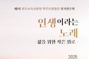 (포탈뉴스통신) 전북특별자치도전주교육지원청은 오는 11월 1일 오후 4시 전주학생교육문화관에서 전주학부모합창단 정기연주회를 개최한다고 30일 밝혔다. 이번 정기연주회는 ‘인생이라는 노래 – 삶을 위한 작은 위로’를 주제로, 음악을 통해 인생의 전세대에 걸친 삶의 여정을 돌아보고 세대와 세대를 잇는 따뜻한 울림의 장을 마련하고자 한다. 연주회는 '유년시절', '청춘', '우리, 지금', '인생’의 네 개의 테마로 구성됐으며, 각 무대는 인생의 다양한 순간을 음악으로 표현해 교육가족과 관객들에게 깊은 감동을 선사할 예정이다. 여성합창단(회장 여경아, 단원 53명)과 남성합창단(회장 도내현, 단원 27명)이 함께 무대에 올라 '카치니 아베마리아', '노을', '바람의 노래', '백만송이 장미', 'Coro di Schiavi Ebrei', 'Gaudeamus(기뻐하라)' 등 클래식과 대중이 어우러진 곡들을 풍성한 하모니로 들려준다. 이번 공연은 지휘자 이우진, 반주자 박찬근·박연진이 함께하며 전문성과 예술성을 더했다. 공연에는 학부모, 학생, 시민 등 약 500여 명이 함께해 세대가 어우러지