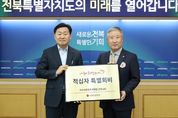 (포탈뉴스통신) 전북특별자치도는 2일 도청에서 대한적십자사 전북지사에 2026년도 적십자 특별회비 500만 원을 전달했다. 이번 전달식은 2026년도 적십자 모금 개시를 알리는 제1호 특별회비 전달식으로 진행됐으며, 김관영 도지사가 직접 특별회비를 전했다. 전달식에는 대한적십자사 전북지사 김홍식 회장과 임직원이 참석해 지역사회 나눔 실천의 의미를 함께했다. 전북도는 매년 적십자 특별회비를 기탁하며 도민 참여 확산과 기부문화 정착에 앞장서고 있다. 적십자 특별회비는 지역 취약계층 긴급지원, 재난 대비 및 구조 활동, 헌혈 활성화, 안전교육 등 다양한 인도주의 사업에 활용된다. 특히 기후변화로 인한 자연재해 증가와 복지 사각지대 확대 속에서 적십자 활동의 중요성이 더욱 강조되고 있다. 내년도 대한적십자사 전북지사의 적십자회비 모금 목표는 12억 4천만 원이며, 2026년 1월 31일까지 집중 모금기간을 운영하고 있다. 김관영 도지사는 “적십자 특별회비는 어려운 이웃을 돕고 재난 상황에서 생명을 지키는 데 중요한 역할을 한다”며 “전북도는 앞으로도 도민들과 함께 지역 공동체를 위한 나눔 실천