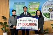 (포탈뉴스통신) 제주도교육청 태흥초등학교는 태흥새마을금고로부터 졸업생을 위한 장학금 100만 원을 기탁받았다고 23일 밝혔다. 태흥새마을금고는 지역 금융기관으로서 해마다 태흥초등학교 졸업생들에게 장학금을 지원하며 지역 인재 양성과 나눔 문화 확산에 꾸준히 앞장서고 있다. 올해 기탁된 장학금은 졸업을 앞둔 학생들에게 전달돼 새로운 출발을 응원하는 데 사용될 예정이다. 오정미 교장은 “매년 학생들의 성장을 응원하며 따뜻한 나눔을 실천해 주시는 태흥새마을금고에 깊이 감사드린다”며 “이번 장학금이 졸업생들에게 꿈을 향해 나아갈 용기와 희망이 되기를 바란다”고 말했다. [뉴스출처 : 제주도교육청]