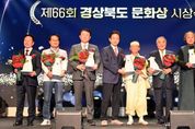 (포탈뉴스통신) 경상북도는 23일 스탠포드호텔 안동 그랜드볼룸에서 제66회 경상북도 문화상 시상식을 개최했다. 이날 시상식에는 이철우 경상북도지사와 박성만 경북도의회 의장, 김학동 예천군수, 김재수 경북문화재단 대표이사, 권오수 한국예총 경북연합회장 등 문화예술 관계자들이 참석해 올 한 해 지역 문화예술 발전에 헌신한 수상자를 격려하고 축하했다. 경상북도 문화상은 1956년 제정된 이래 지역의 문화예술 진흥과 전통문화의 창조적 계승·발전에 공로가 뛰어난 사람에게 수여해 온 경북 문화 분야 최고의 권위를 자랑하는 상이다. 경상북도 문화상은 제65회까지 총 403명의 수상자를 배출했으며, 청마 유치환(1956, 문학), 한솔 이효상(1958, 공로), 김춘수(1974, 문학), 김집(1974, 체육) 등 경북을 대표하는 문화예술인이 수상자 명단에 이름을 올리며 지역 문화의 품격과 전통을 이어왔다. 이번 행사에서는 문학·체육·언론·문화·학술·시각예술·공연예술 등 7개 부문에서 각 1명씩 선정된 공로자에게 문화상이 수여됐다. 문학부문은 꾸준한 창작활동과 예천문인협회 창립, 지역 문학지 발간 등