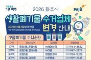 (포탈뉴스통신) 파주시는 2026년 1월 1일부터 관내 생활폐기물(쓰레기) 수집·운반 대행업체가 변경됨에 따라, 시민에게 정확한 정보를 안내하고 현장 운영이 원활히 정착될 수 있도록 홍보와 안내를 강화하고 있다고 밝혔다. 이번 대행업체 변경으로 지역별 담당 업체가 달라졌으며, 특히 문산읍의 경우 세부 지역(리 단위)에 따라 담당 업체가 서로 다를 수 있어 시민들의 각별한 주의가 필요하다. 변경된 담당 업체 정보는 파주시청 누리집에서 확인하거나, 자원순환과 청소행정팀 및 민원전화상담실(콜센터)로 문의하면 안내받을 수 있다. 파주시는 시민 혼선을 최소화하기 위해 변경 사항을 지속적으로 홍보하는 한편, 대행업체와 협력해 현장 안내를 강화하고 주민 문의에 신속히 대응해 나갈 계획이다. 심재우 자원순환과장은 “대행업체 변경 초기에는 일시적인 혼선이 발생할 수 있다”라며 “현장 점검을 강화해 수거 지연 등 문제를 신속히 해소하고 청소 행정이 조기에 안정될 수 있도록 노력하겠다”라고 밝혔다. [뉴스출처 : 경기도 파주시]