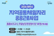 (포탈뉴스통신) 파주시가 오는 23일까지 2026년 상반기 지역공동체 일자리 및 공공근로사업 참여자 14명을 모집한다고 밝혔다. 지역공동체 일자리와 공공근로사업은 취업 취약계층에게 공공일자리를 제공해 최소한의 생계를 보장하고 재취업을 위한 도전의 발판을 마련하기 위한 일자리 지원 사업이다. 지역공동체 일자리사업은 ▲주말농장 환경 정비 ▲촘촘보조교사 ▲마을정원 조성 및 유지관리 등 4개 분야에서 총 11명을, 공공근로사업은 ▲청소년 활동 프로그램 보조 ▲초등 생존수영 프로그램 업무 지원 ▲어린이보호구역 폐쇄회로텔레비전(CCTV) 집중 관제 등 3개 분야에서 총 3명을 각각 모집한다. 선발자들은 3월 3일부터 6월 26일까지 약 4개월간 주 5일 근무하게 되며, 4대 보험 가입과 함께 주휴수당 및 연차수당이 지급된다. 지역공동체 일자리사업의 시간당 임금은 1만 320원이며, 근무일마다 부대비 5천 원이 별도로 지급된다. 공공근로사업의 시간당 임금은 1만 2,070원이다. 참여 자격은 ▲사업개시일 기준 18세 이상 ▲재산 4억 원 이하를 만족하고, 가구소득은 기준중위소득을 기준으로 지역공동체 일자리사업은