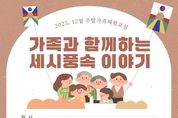 (포탈뉴스통신) 대구교육박물관은 오는 12월 20일 오전 10시와 오후 2시, 박물관 행복공감실에서 총 2회에 걸쳐 운영되는 12월 주말가족체험교실 ‘가족과 함께 하는 세시풍속 이야기’에 참여할 초등학생을 포함한 16가족(회차별 8가족)을 모집한다. 이번 체험교실은 세시풍속을 주제로 한 탐구 및 표현 활동을 통해 역사적 지식을 함양하고, 역사를 중심으로 미술·실과 등 다양한 교과와의 융합 활동을 통해 학생들의 창의력을 높이고자 마련됐다. 주요 활동은 ▲세시풍속 개념 탐구하기, ▲2026 세시풍속 달력 만들기, ▲세시풍속 카드 놀이 및 보드게임, ▲전시물 탐방 등으로, 가족 간 소통을 촉진하고, 세시풍속의 의미를 자연스럽게 이해할 수 있는 다양한 체험이 진행된다. 박물관은 12월 5일부터 누리집을 통해 참여 신청을 접수하며, 기타 자세한 사항은 교육학예부로 문의하면 된다. 홍진근 관장은 “이번 프로그램을 통해 가족들이 함께 세시풍속의 의미를 배우고 체험하면서, 일상의 쉼 속에서 역사와 문화의 가치를 느끼시길 바란다”며, “앞으로도 박물관이 지역사회와 소통하며 역사와 문화를 확산하는 공간으로 자리매김
