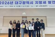 (포탈뉴스통신) 대구 서구는 지난 16일, 대구시와 한국지방세연구원이 공동 주관한 2026년 지방세 발전 포럼에서 최우수상을 차지했다. 이번 발전 포럼은 지방세 분야 우수 연구과제 공유를 통한 지방 세정 발전을 도모하기 위해 마련됐다. 심사는 서면 심사와 발표 심사를 합산하는 방식으로 진행됐으며, 서구는 가장 높은 평가를 받아 2026년 행정안전부 주관 ‘지방세 발전 포럼’에 대구시 대표로 참가하게 된다. 이번에 최우수를 수상한 연구과제는 세무과 오수정 주무관의 ‘중고차 취득세 누락 차단’에 대한 해결 방안이다. 해당 과제는 국세청 자료와 취득세 신고액의 상시 교차검증 체계를 제안함으로써 탈루 세원 차단 및 조세 정의 실현을 기대할 수 있다는 점에서 높은 평가를 받았다. 류한국 서구청장은 “세입 확충 방안을 연구한 세무 담당 공무원의 노고를 치하하며, 앞으로도 안정적인 세정 운영을 통해 구민 삶의 질 향상에 기여하겠다.”라고 밝혔다. [뉴스출처 : 대구시서구청]
