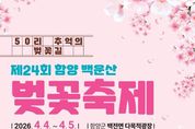 (포탈뉴스통신) 함양군은 ‘제24회 함양 백운산 벚꽃축제’가 오는 4월 4일부터 5일까지 이틀간 백전면 다목적광장 일원에서 개최된다고 밝혔다. 백전면 문화체육회(회장 황원하)가 주최·주관하는 이번 축제는 아름다운 50리 벚꽃길을 배경으로 각종 체험행사, 먹거리와 함께 벚꽃 전국트롯가요제 등 다양한 프로그램을 마련해 상춘객을 맞이할 예정이다. 백전면 50리 벚꽃길은 수동면에서 백전면으로 이어지는 구간으로, 30여 년 전 함양 출신의 고(故) 박병헌 재일거류민단장이 기증한 벚나무가 지금까지 보전 관리되어 함양군 봄 명소로 자리 잡고 있다. 축제 첫날인 4일에는 벚꽃축제 성공기원제를 시작으로 오전 11시 개막식과 축하공연, 주민자치프로그램 공연, 면민 노래자랑 등 각종 프로그램이 진행된다. 축제 둘째 날인 5일에는 마을 대항 민속놀이, 제3회 백운산 벚꽃 전국트롯가요제, 지역 가수 공연 등이 진행될 예정이며, 축제 기간 벚꽃길 야간조명 등 다양한 볼거리를 통해 방문객 체류 시간을 늘릴 계획이다. 특히, 올해로 3회째를 맞는 ‘함양 백운산 벚꽃 전국트롯가요제’가 축제 기간 개최되며, 5일에는