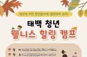 (포탈뉴스통신) 태백시는 태백 청년창창센터에서 지역 청년들의 심리적 회복과 건강한 삶의 균형을 지원하기 위해 ‘청년 웰니스 힐링 캠프’ 참가자를 모집한다고 밝혔다. 이번 캠프는 11월 22일 오후 2시부터 5시 20분까지 태백 청년창창센터(태백시 계산1길 15)에서 진행되며, 태백시에 주소를 두거나 생활근거지가 있는 18세 이상 49세 이하 청년 20명 내외를 대상으로 한다. 일상에 지친 청년들을 위하여 △ 사상체질 테스트를 통한 웰니스 한방 체험 △ 색채 심리 검사에 따른 맞춤형 웰니스 컨설팅 △ 개인 맞춤형 아로마 오일 처방 등 다양한 프로그램이 준비되어 있으며, 청년들은 본인의 취향에 맞춰 선택적으로 프로그램 체험이 가능하다. 참가 신청은 네이버폼 또는 포스터의 QR코드를 통한 온라인으로 접수가 가능하며 참가자는 선착순 20명 내외로 선정될 예정으로, 자세한 사항은 태백시청 홈페이지 소통참여 ' 시민공지신청 ' 일반공지신청 탭에서 확인할 수 있다. 경제진흥원 관계자는 “청년의 역량강화와 사회참여 촉진 등 다양한 청년 활동 지원을 위해 마련된 청년센터가 올해 10월 강원특별자치도 경제진흥원으로
