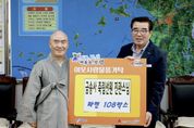 (포탈뉴스통신) 보령시는 27일 시장실에서 김동일 보령시장과 삽시도 금송사 죽림선원 진관스님 등 관계자가 참석한 가운데 이웃사랑 후원물품 전달식을 가졌다고 밝혔다. 이날 기탁된 물품은 230만 원 상당의 라면 108박스로, 식사 준비에 어려움을 겪는 관내 저소득 취약계층 가구의 생활 안정을 돕기 위해 마련됐다. 기탁된 물품은 각 읍·면·동을 통해 도움이 필요한 소외계층 108가구에 소중히 전달될 예정이며, 대상자들이 일상 속에서 따뜻한 이웃의 정을 느낄 수 있도록 도울 계획이다. 삽시도 금송사 죽림선원은 지난 18여 년 동안 여름철 냉방기기, 겨울철 이불 등 계절마다 꼭 필요한 맞춤형 물품을 후원하며 보령시 나눔 문화 확산의 본보기가 되고 있다. 진관스님은 “정성을 담아 준비한 물품이 우리 주변의 어려운 이웃들에게 작게나마 실질적인 도움이 되길 바란다”며 “앞으로도 이웃과 함께 상생하며 부처님의 나눔 정신을 실천해 나가겠다”고 말했다. 김동일 보령시장은 “매번 계절마다 꼭 필요한 물품으로 온정을 전해주시는 금송사 죽림선원 진관스님께 깊이 감사드린다”며 “기탁하신 소중한 성품이 꼭 필요한