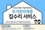 (포탈뉴스통신) 인천광역시 계양구는 작전동에 운영 중인 마을주택관리소에서 주거취약계층을 위한 집수리 서비스를 추진한다고 밝혔다. 올해 추진되는 집수리 서비스는 2025년 5차 신청 81가구에 대한 집수리가 지난해 12월 완료됨에 따른 사항으로, 오는 2월 9일부터 27일까지 관할 동 행정복지센터에 방문해 신청할 수 있다. 신청 서식과 세부 사항은 계양구청 누리집 ‘공지사항’에서 확인 가능하다. 신청 대상은 사용승인(준공) 이후 20년 이상 경과한 노후・불량 단독 및 공동주택 ('공동주택관리법'에 따른 관리주체가 있는 공동주택을 제외)에 거주하는 계양구 주민 중, 65세 이상 고령자, 독거노인, 장애인, 국가유공자 등 집수리 지원이 필요한 주거취약계층이다. 신청 분야는 도배・장판・샤워기・변기・방충망 등의 경보수 집수리이며, 현장 점검 후 집수리 교육을 이수한 자원봉사자들과 함께 작업이 진행될 예정이다. 구 관계자는 “접수된 신청 사항을 바탕으로 집수리 전문 인력이 현장을 방문해 수리가 필요한 부분을 면밀히 점검하고, 신속하게 지원하겠다.”라며 “주거 취약계층의 생활 불편을 줄이고 안전한