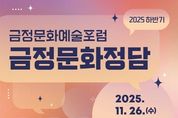 (포탈뉴스통신) 부산시 금정구 금정문화재단은 금정구 예술인과 함께 지역 문화예술의 현안을 공유하고 미래 발전 방향을 모색하기 위한 2025 하반기 금정문화예술포럼 '금정문화정담'을 오는 11월 26일 오후 6시 30분, 아르코공연연습센터@금정 대연습실에서 개최한다고 밝혔다. 상반기 포럼이‘동행: 금정예술가 정답게 주고받는 이야기’를 주제로 지역 문화환경의 변화 속에서 예술 생태계의 현황을 공유하고 네트워킹의 중요성을 강조했다면, 하반기 포럼은 한 해의 활동을 돌아보고 향후 재단과 예술인이 함께 만들어갈 협력과 실천의 방향을 구체화하는 자리가 될 예정이다. 특히 이번 포럼은‘금정구 거주예술인 모집’을 통해 약 100명의 지역 예술가가 참여할 예정이다. 포럼에서는 지역문화 진흥과 예술가 참여 확대를 위한 다양한 의견을 수렴하고, 예술 장르별 교류와 네트워킹을 통해 협력 기반을 강화하는 시간을 갖는다. 또한 참가 예술인에게는 소정의 참석비가 지급될 예정이다. 윤일현 금정문화재단 이사장은 “금정의 예술인들과 함께 만들어가는 포럼이 지역 문화의 밝은 내일을 여는 원동력이 되길 바라며, 예술가들의 생생한 목소