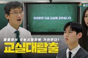 (포탈뉴스통신) 울산광역시교육청은 대학수학능력시험을 앞두고 수험생을 응원하는 영상을 제작해 6일 울산교육청 유튜브에 공개했다. 10분 40초 분량의 영상에는 천창수 교육감과 함월고등학교 3학년 학생 2명이 함께 출연해, 교실을 배경으로 임무를 수행하며 따뜻한 응원 메시지를 전한다. 영상은 ‘교실 탈출’이라는 주제로 방 탈출 게임 형식으로 구성됐다. 교실 안에서 주어진 문제를 단계적으로 해결해 교실을 탈출하는 방식으로, 교육감과 학생들이 협동해 문제를 풀어나간다. 영상의 도입부는 ‘오늘은 11월 13일 목요일, 대학수학능력시험일입니다. 여러분은 지금 교실에 갇혔습니다. 주어진 문제들을 해결해 교실을 탈출하세요!’라는 안내로 시작해 몰입감을 높인다. ‘수능 당일 가장 피해야 할 행동은?’ 등 수능 상황 관련 내용이 출제된다. 참여자들은 수험표, 신분증, 아날로그 시계, 도시락 등 수능 필수 준비물을 실제로 활용해 정답을 찾는 과정이 담겨 있다. 학생들은 문제를 풀며 사물함 비밀번호 단서를 모으고, 자물쇠를 열어 수험생에게 전하는 편지를 찾으면 다음 단계로 나아가는