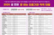 (포탈뉴스통신) 고흥군은 설 연휴인 오는 2월 14일부터 18일까지 5일간 응급환자 발생에 대비하고 의료 공백을 최소화하기 위해 비상진료체계를 가동한다고 밝혔다. 이번 비상진료체계는 연휴 기간 중 의료 이용 불편을 해소하고 응급 상황에 신속히 대응하기 위한 조치로, 응급의료기관 2개소, 보건기관 14개소, 의료기관 34개소, 약국 24개소와 협력해 운영한다. 또한, 보건소는 상황근무반을 편성해 ▲문 여는 의료기관 및 약국 운영 현황 점검 ▲감염병 발생 점검 ▲집단환자 발생 의심 사례 대응 등 연휴 기간 감염병 대응을 위한 비상방역체계도 병행할 계획이다. 보건소 관계자는 “설 연휴 동안 군민들이 안전하고 건강하게 명절을 보낼 수 있도록 비상진료체계를 철저히 운영하겠다”며 “주민들께서는 응급 상황 시 119를 이용하고, 경증 환자는 문 여는 의료기관과 약국을 적극 활용해 달라”고 당부했다. 한편, 설 연휴 기간 진료가 가능한 의료기관과 약국 정보는 고흥군보건소 누리집이나 응급의료포털에서 확인할 수 있으며, 고흥군 보건소로 문의하면 자세히 안내받을 수 있다. [뉴스출처 : 전남 고흥군]