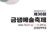 (포탈뉴스통신) 부산시 금정구가 주최하고 금정구 문화예술인협의회(회장 도태근)가 주관하는 10월 31일부터 11월 9일까지 금정문화회관 은빛샘홀, 금샘미술관 전시실, 야외광장에서 ‘제30회 금샘예술축제’를 개최한다. 금샘예술축제는 국악·무용·문인·미술·사진·서예·연극·연예인·음악 등 9개 협회로 이루어진 금정구 문화예술인협의회에서 주관하는 지역대표 문화예술축제로, 30년째 매년 가을, 금정구 예술인들의 수준 높은 공연과 전시로 금정구 문화예술의 품격을 높여온 순수 종합예술축제다. 10월 31일 금정문화회관 은빛샘홀에서 개막 공연인 연극협회의 ‘늙은 자전거’를 시작으로, 11월 1일 음악협회의 ‘금샘열린음악회’, 11월2일 연예인협회의 ‘금정구민 현장노래방’이 진행된다. 아울러, 10월 31일부터 11월 9일까지 금샘미술관 전시실과 야외광장에서 서예협회의 ‘금정구서예인협회전’, 사진협회의 ‘금샘사진전’, 문인협회의‘깃발시화전 '파란 하늘 아래 시어가 펄럭이다'’이 진행된다. 올해 예술제에 참여하지 않은 국악협회, 무용협회와 미술협회는 내년에 더욱 풍성하게 준비하여 참여할 예정이다. 도태근