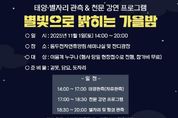 (포탈뉴스통신) 동두천시시설관리공단은 오는 11월 1일 동두천자연휴양림에서 가을밤 하늘을 배경으로 별자리와 행성을 함께 관측하는 '천문행사 ‘별빛으로 밝히는 가을밤’'을 개최한다. 이번 행사는 시민이 자연 속에서 직접 천체를 관측하며 과학문화의 즐거움을 체험하고, 가족 단위 방문객에게는 휴식과 소통의 시간을 제공하기 위해 마련됐다. 행사는 오후 2시부터 8시까지 자연휴양림 어울림동 세미나실 및 잔디마당 일원에서 진행된다. 낮에는 태양 전용 망원경을 활용한 태양 관측 체험, 저녁에는 전문 강연과 함께 달·행성·별자리 관측 프로그램이 운영된다. 또한 시민 참여형 이벤트인 ‘별자리 퀴즈’도 열려 참가자들이 과학을 보다 쉽고 흥미롭게 접할 수 있도록 구성됐다. 이종진 동두천시시설관리공단 이사장은‘별빛으로 밝히는 가을밤’은 가족과 함께 별을 보며 자연의 아름다움과 과학의 신비로움을 동시에 느낄 수 있는 뜻깊은 행사”라며“앞으로도 시민이 함께 참여할 수 있는 ESG형 과학문화 프로그램을 지속적으로 추진하겠다”라고 밝혔다. [뉴스출처 : 경기도 동두천시]