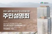 (포탈뉴스통신) 천안시는 오는 13일 성환읍 행정복지센터에서 ‘천안 성환 혁신지구 도시재생사업 주민설명회’를 개최한다. 이번 설명회는 천안 성환 혁신지구가 지난 9월 5일 국토교통부 도시재생 혁신지구 공모사업에 최종 선정됨에 따라, 사업의 주요 내용과 시의 향후 추진계획을 지역 주민들에게 알리고 의견을 수렴하기 위한 자리이다. 천안 성환 혁신지구 도시재생사업은 기존 이화시장 일원에 산업단지·대학·연구기관을 연계한 혁신거점시설을 조성하고, 주거·상업· 복지시설 등이 결합한 공간을 조성하는 사업이다. 주민설명회에서는 사업 개요와 향후 계획, 주민 참여 방안 등을 안내하고, 질의응답 및 의견수렴도 함께 진행될 예정이다. 이경열 도시주택국장은 “성환 혁신지구 도시재생사업은 성환 지역 활성화를 위해 오랜 기간 준비해 온 사업인 만큼, 주민과 함께 소통해 추진해 나갈 것”이라며 “많은 주민께서 설명회에 참석해주시길 바란다”고 밝혔다. [뉴스출처 : 충청남도 천안시]