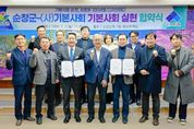 (포탈뉴스통신) 순창군은 2일 군청 영상회의실에 사단법인 기본사회와 ‘순창형 기본사회 실현’을 위한 업무협약을 체결하고, 모두가 함께 잘 사는 지속가능한 지역사회를 위한 공동 협력에 나섰다. 이번 협약은 인구 감소와 고령화라는 지방의 지속가능한 미래를 여는 새로운 사회 설계의 출발점이 될 전망이다. 또한, 이번 업무협약은 단순한 선언에 그치지 않고, 군민 모두가 삶의 출발선에서 최소한의 안정과 기회를 보장받는 ‘기본사회’의 철학을 실제 정책으로 구현하겠다는 실천적 의지를 담고 있다. ‘기본사회 순창, 새로운 100년을 디자인하다’라는 주제로 열린 이번 협약식에는 최영일 순창군수를 비롯해 강남훈 명예이사장, 정균승 부이사장(이사장 직무대행), 함효건 사무총장, 송종운 정책연구소장 등 사단법인 기본사회 주요 인사들이 참석했다. 구체적으로, 이번 협약을 통해 양 기관은 6가지 핵심 분야에서 긴밀히 협력한다. 기본사회 실현과 지역사회 발전을 위한 협력을 시작으로, 정책사업 기획 및 추진, 정책사업 모델 발굴을 위한 정보 교류, 지역 기반 협력체계 구축 및 관계기관 연계, 정책 성과 공유와 확산