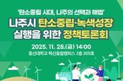 (포탈뉴스통신) 나주시의회는 오는 11월 28일 오후 2시, 동신대학교 혁신융합캠퍼스 205호에서 '나주시 탄소중립·녹색성장 실행을 위한 정책토론회'를 개최한다. 이번 토론회는 나주시의회 에너지발전특별위원회가 주관하며, 지역 특성에 맞는 탄소중립 실행전략과 시민 참여 방안을 논의하기 위해 마련됐다. 이번 토론회는 지난 10월 개최된 ‘영산강 국가정원 탄소중립 포럼’에서의 논의에 이어 탄소중립 이행 전략부터 ‘에너지 수도 나주’의 미래 산업전환 과제까지 주제를 확장하는 후속 논의의 성격을 갖는다. 에너지발전특별위원회가 지역 현안과 중장기 전략을 동시에 다루는 연속형 정책 논의의 장을 마련하고 있다는 점에서 큰 의미가 있다. 최근 '탄소중립·녹색성장 기본법'에 따라 모든 지자체는 탄소중립 녹색성장 실행계획을 수립·제출하고 있으며 2026년부터는 정부의 연례 이행점검이 본격화될 예정이다. 이에 따라 기후위기 대응뿐 아니라 산업 경쟁력 유지, 지역경제 활성화, 시민 수용성 제고 등 다양한 요소를 고려한 통합적 접근이 강조되고 있다. 특히 ‘에너지 수도’ 나주시의 경우 탄소중립 목표