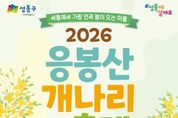 (포탈뉴스통신) 서울 성동구는 오는 3월 27일부터 28일까지 이틀간 봄의 기운을 가득 품은 응봉산에서 ‘2026년 응봉산 개나리 축제’를 개최한다. 응봉산은 한강과 서울숲을 비롯한 서울 동부권을 한눈에 내려다볼 수 있는 도심 속 대표 일출 명소이자 조망명소로 손꼽힌다. 매년 봄이면 산 전체가 개나리꽃으로 가득 차 서울에서 가장 먼저 봄소식을 전하는 곳이다. 이에 구는 개나리 개화 시기에 맞춰 매년 주민 모두가 함께 즐기는 ‘응봉산 개나리 축제’를 개최하고 있다. 올해 축제에서는 ▲ 문화 공연 ▲ 가족 백일장 및 그림그리기 대회 ▲ 체험 프로그램 및 개나리 포토존 등 다채로운 행사들이 펼쳐진다. 첫날인 27일에는 금관악기로 구성된 브라스밴드의 신나는 공연을 시작으로 개막식이 열리며, 인생네컷, 페이스페인팅 등 체험프로그램과 다양한 포토존, 개나리 아치 등 조형물이 설치된다. 이어 둘째 날인 28일에는 소년소녀합창단의 멋진 합창 공연에 이어 300여 명의 어린이와 가족들이 참여하는 ‘백일장 및 그림그리기 대회’가 열린다. 구는 3월 25일까지 구청 누리집(홈페이지)을 통해 대회 참가자 사
