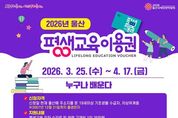 (포탈뉴스통신) 울산시는 시민 누구나 평생학습의 기회를 누릴 수 있도록 ‘2026년 울산광역시 평생교육이용권(이하 이용권) 지원사업’을 본격 추진한다고 밝혔다. 이번 사업은 저소득층, 중장년, 노인, 장애인 등 다양한 계층을 대상으로 평생교육 수강료를 지원하는 제도로, 시민의 학습권 보장과 삶의 질 향상을 목표로 추진된다. 이용권 대상자로 선정되면 평생교육 강좌 수강료와 교재비로 사용할 수 있는 35만 원이 포인트로 지원된다. 대상자는 지급된 포인트로 관내 등록된 67개 사용기관의 온·오프라인 강의를 수강할 수 있다. 사용기관은 평생교육이용권 누리집에서 확인 가능하다. 올해 평생교육이용권은 총 2,404명 규모로 지원된다. 지원 대상자는 ▲저소득층 성인(19세 이상 기초생활수급자․차상위계층), 등록장애인(19세 이상)뿐만 아니라 ▲노인(65세 이상) ▲디지털 관련 평생교육 수강 희망자(30세 이상) ▲지역특화 대상자(40세 이상~65세 미만) 등 다양한 계층을 지원해 전 세대가 학습 기회를 누릴 수 있도록 할 계획이다. 우선, 1차로 울산시에 주소를 둔 19세 이상 기