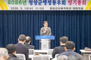 (포탈뉴스통신) 청양군 행정동우회(회장 임수만)가 지난 18일 다목적회관 대회의실에서 ‘2026년 정기총회’를 개최하고, 평생 쌓아온 행정 경험을 바탕으로 지역사회 발전에 앞장설 것을 다짐했다. 이날 총회에는 김돈곤 군수와 임수만 회장을 비롯한 행정동우회원 80여 명이 참석했다. 행사는 ▲2025회계연도 결산 감사 및 보고 ▲2026년 사업계획 및 예산안 심의 ▲행정동우회 운영규정 일부 개정안 논의 순으로 진행됐다. 임수만 회장은 “회원 여러분의 적극적인 참여와 협조로 지난해 회원들이 갈망하던 사무실 개소와 더불어 동우회의 지역사회에서의 의미있는 활동과 원활한 운영이 가능할 수 있었다”며 “오랜 공직 경험을 바탕으로 지역사회 발전에 기여하고 후배 공직자들에게 든든한 조언자가 될 수 있도록 앞으로도 회원들과 함께 힘을 모아 나가겠다”고 말했다. 김돈곤 군수는 “지역 발전의 토대를 다지는 데에는 행정 경험과 지혜를 나누는 선배 공직자들의 역할이 매우 중요하다”며 “저 또한 후배 공직자로서 여러분의 조언을 아낌없이 경청을 통해 협력할 것이며, 지역사회를 위한 다양한 활동으로 청양군의 발전에 힘을 보태주