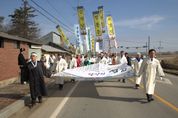 (포탈뉴스통신) 132년 전 부당한 권력에 맞서 평등 세상을 외쳤던 농민들의 뜨거운 함성이 정읍 일대에 다시 울려 퍼졌다. 26일 이평면과 고부 일원에서 열린 고부봉기 재현행사가 성황리에 막을 내렸다. ㈔동학농민혁명 고부봉기 기념사업회가 주최·주관하고 정읍시가 후원한 이번 행사는 동학농민혁명의 출발점인 ‘고부봉기’의 역사적 의미를 되새기기 위해 마련됐다. 행사 당일 이평, 고부 등 옛 고부군 지역 주민들과 관람객들은 직접 농민군이 돼 역사적 장면을 체험하는 특별한 경험을 나눴다. 이날 행사의 백미는 단연 ‘농민군 진군 행렬’이었다. 이평면 예동마을에서 출발해 말목장터로 향하는 대열은 1894년 당시의 긴장감과 결기를 실감나게 재현했다. 말목장터에 도착한 대열이 격문을 낭독하자, 현장을 지켜보던 관람객들 사이에서 박수와 환호가 터져 나왔다. 이어 진행된 공식 기념식에서는 동학농민혁명의 숭고한 정신을 서사적으로 풀어낸 창극과 첨단 가상현실(VR)을 접목한 융복합 공연이 무대에 올라 관객들의 눈과 귀를 사로잡았다. 행사는 옛 고부 관아 터(현 고부초등학교)에서 펼쳐진 ‘마당극’으
