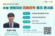 (포탈뉴스통신) 구로구가 오는 4월 2일 구로구청 대강당에서 ‘2026 수능 만점자와 진로진학 토크콘서트’를 개최한다. 이번 토크콘서트는 대학수학능력시험 만점자의 실제 경험을 바탕으로 효과적인 학습 방법과 진로·진학 전략을 공유하고, 청소년과 학부모의 궁금증을 해소하기 위해 마련됐다. 강연자로는 2026학년도 대학수학능력시험 만점자인 최장우 학생(서울대학교 경제학부 재학)이 나선다. 최장우 학생은 ‘유 퀴즈 온 더 블록’, ‘뉴스투데이’, ‘김현정의 뉴스쇼’ 등 다양한 방송과 유튜브 채널에 출연해 주목받았다. 이날 특강은 관내 중‧고등학생 및 학부모 150명을 대상으로 4월 2일 오후 7시부터 8시 30분까지 진행된다. 전문 사회자의 진행으로 사전 접수된 질문 중 5가지를 선정해 답변하고, 청소년과 학부모에게 전하고 싶은 메시지도 함께 전달할 예정이다. 이어 현장 참여자들과의 즉석 질의응답을 통해 보다 구체적이고 실질적인 상담을 진행하고, 행사 종료 후에는 만족도 조사와 기념사진 촬영으로 마무리한다. 신청은 3월 31일까지 홍보 안내문의 큐알(QR)을 통해 선착순으로 접수한다. &nbs