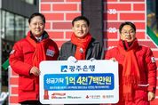 (포탈뉴스통신) 광주은행은 1일 아시아문화전당 광장에서 열린 ‘희망 2026 나눔캠페인’ 성금 전달식 및 사랑의 온도탑 제막식에 참석해 총 1억4천7백만 원의 성금을 기탁했다고 밝혔다. 광주은행은 지역 대표 금융기관으로서 복지 사각지대 해소와 나눔 문화 확산에 앞장서기 위해 ▲모금 참여 기부금 1천만 원 ▲‘광주·전남愛사랑카드’ 광주 고향사랑기부금 9천1백만 원 ▲범죄피해자 지원금 2천만 원 ▲쌀 기부금 2천6백만 원 등 총 1억4천7백만 원의 성금을 전달했다. 전달된 성금은 광주사회복지공동모금회를 통해 지역의 어려운 이웃들이 보다 따뜻한 겨울을 보낼 수 있도록 다양한 지원 사업에 활용될 예정이다. 광주은행은 이와 별도로 전남 지역에도 ▲모금 참여 기부금 1천만 원 ▲‘광주·전남愛사랑카드’ 전남 고향사랑기부금 6천1백만 원 등 총 7천1백만 원을 기탁할 계획이다. 2018년 창립 50주년을 기념해 출시된 ‘광주·전남愛사랑카드’는 이용액의 일부가 고객이 지정한 광주·전남 사회복지공동모금회에 자동 기부되는 사회공헌형 금융상품이다. 출시 이후 현재까지 약 19억9천만 원을 기부하며 지역사회 나눔 실천에