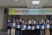 (포탈뉴스통신) 김해시는 지난 21일 제15기 자원순환해설사 수료식을 개최했다고 22일 밝혔다. 자원순환해설사 양성교육은 시민의 눈높이에 맞는 자원순환 교육과 홍보를 통해 생활 속 분리배출 실천을 확산하고, 탄소중립사회 실현에 기여하기 위해 운영되는 김해시의 대표적인 환경교육 프로그램이다. 양성교육은 지난 19일부터 수료식까지 ▲김해시 자원순환 정책 이해 ▲김해시 자원순환 해설사 이해 ▲탄소중립시대 자원순환의 가치와 중요성 ▲데이터로 읽는 변화 순으로 진행됐다. 2012년 시작한 교육은 올해 15번째로 총 446명의 수료생을 배출했다. 자원순환해설사는 학교와 마을, 각종 행사, 교육 현장에서 자원재활용 홍보·계도활동을 비롯해 찾아가는 분리배출교육, 다량배출사업장 점검, 투명페트병 별도 분리배출 홍보 등 클린도시 김해 조성을 위한 다양한 활동을 수행하게 된다. 이용규 자원순환과장은 “자원순환해설사는 시민과 행정을 잇는 중요한 연결고리”라며 “앞으로도 체계적인 교육과 지속적인 활동 지원으로 자원순환 실천문화가 지역사회 전반에 확산될 수 있도록 노력하겠다”고 말했다. [뉴스출처 : 경상남도김해시]