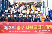 (포탈뉴스통신) 인천 중구의회는 12월 16일, 중구 평생학습관에서 개최된 제3회 중구사랑 글짓기 대회 시상식에 참석해 수상자들을 축하했다고 밝혔다. 이날 시상식에는 강후공 의원이 참석해 수상자들에게 축하 인사를 전하고, 참여 학생들과 관계자들을 격려했다. 강후공 의원은 “이번 대회를 통해 지역에 대한 이해와 자긍심이 자연스럽게 형성되고, 올바른 가치관과 표현력을 기르는 계기가 되길 바란다”라며 “중구의회도 지역 정체성과 공동체 의식을 높이는 다양한 문화·교육 활동을 지속적으로 응원하겠다”라고 밝혔다. 또한 앞으로도 주민 참여형 문화·교육 행사를 적극 지원하고, 지역사회와 소통하는 의정활동을 이어갈 계획이라고 말했다. [뉴스출처 : 인천시 중구의회]