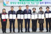 (포탈뉴스통신) 함양군은 3월 4일 오후 군청 소회의실에서 의료·요양 통합돌봄사업의 원활한 추진을 위해 지역 내 돌봄서비스 제공기관과 업무협약을 체결했다고 밝혔다. 이번 협약은 노쇠, 질병, 장애 등으로 일상생활 유지에 어려움을 겪는 주민들에게 가사, 식사, 목욕, 청소, 이동지원 등 다양한 돌봄서비스를 통합적으로 제공하기 위한 민·관 협력체계를 구축하기 위해 마련됐다. 특히 이번 통합돌봄사업에 참여하는 서비스 제공기관은 공개 모집을 통해 접수된 기관을 대상으로, 전문가로 구성된 심사위원회의 심사를 거쳐 선정됐으며, 서비스 수행 역량과 사업 이해도 등을 종합적으로 평가해 최종 결정됐다. 통합돌봄사업은 3월부터 본격 시행되며, 서비스 이용을 희망하는 주민은 주소지 읍면 사무소를 통해 신청할 수 있다. 함양군 관계자는 “이번 업무협약은 민과 관이 함께 지역 돌봄을 책임지는 중요한 출발점”이라며 “대상자 중심의 촘촘한 통합돌봄서비스 제공을 통해 누구나 살던 곳에서 안심하고 생활할 수 있는 함양군을 만들어 가겠다”라고 말했다. 함양군은 이번 협약을 계기로 통합돌봄사업을 단계적으로 확대 추진하고