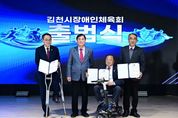 (포탈뉴스통신) 김천시장애인체육회는 2월 25일 김천시청 3층 강당에서 ‘스포츠 중심도시 김천에서 장애인과 비장애인 모두가 함께하는 스포츠 환경 조성’을 위한 김천시장애인체육회의 공식 출범식을 가졌다. 이번 행사에는 배낙호 회장을 비롯하여 장애인체육회 임원 등 300여 명의 내빈들이 참석하여 장애인체육회의 힘찬 출범을 알렸다. 행사는 장애인과 비장애인이 조화롭게 어우러지는 김천의 미래를 그리듯 시립교향악단의 연주와 시립합창단의 합창으로 구성된 식전 공연으로 시작됐으며, 여상규 상임부회장의 출범선언, 손태옥 사무국장의 경과보고가 진행됐다. 이어 회기의 릴레이 전달, 도장애인체육회의 인준패 전수, 공로패 수여, 가맹단체 인준서 수여가 진행됐으며, 배낙호 회장의 기념사, 안용우 도장애인체육회 상임부회장 격려사, 나영민 의장, 박선하 도의원, 최한동 김천시체육회장의 축사와 떡케이크 절단 퍼포먼스가 이어졌다. 김천시는 2024년 12월 2일 장애인체육회 설립추진계획을 수립하고 12월 11일 설립준비위원회 구성, 수차례의 회의를 거치고 규약 및 제규정의 제정, 인력채용 및 사무실 인프라 구축 등 설립 절차를