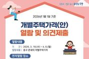 (포탈뉴스통신) 울산 중구가 2026년 1월 1일 기준 개별주택가격을 공개하고, 3월 18일부터 4월 6일까지 주택 소유자와 이해 관계인의 의견을 청취한다. 개별주택가격 열람 대상은 중구 지역 내 단독·다가구 주택 등 1만 4,746호다. 중구는 지난해 11월부터 올해 2월까지 주택 특성을 조사해 가격을 산정하고 한국부동산원의 가격 타당성 검증을 마쳤다. 주택 소유자와 이해 관계인은 중구청 세무1과 또는 주택 소재지 행정복지센터를 방문하거나 국토교통부 ‘부동산공시가격알리미’ 누리집을 통해 개별주택가격을 확인할 수 있다. 개별주택가격에 대해 의견이 있으면 의견서를 작성해 중구청 세무1과 또는 주택 소재지 행정복지센터를 방문하거나 우편, 팩스 등으로 제출하면 된다. ‘부동산공시가격알리미’ 누리집을 통해서도 의견을 제출할 수 있다. 중구는 의견이 접수되면 주택의 특성과 인근 주택과의 가격 균형 등을 재조사한 뒤 한국부동산원의 검증 및 중구 부동산가격공시위원회 심의를 거쳐 4월 중 의견 제출인에게 결과를 개별 통지할 예정이다. 해당 절차를 거쳐 확정된 2026년 1월