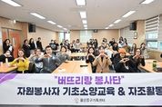 (포탈뉴스통신) (사)울주군자원봉사센터(이사장 손덕현)가 18일 센터 교육장에서 자원봉사자 40명을 대상으로 ‘기후행동 실천가 양성 교육’을 진행했다. 이번 교육은 기후위기에 대한 시민 인식을 높이고 실천 역량을 갖춘 자원봉사자를 양성하기 위해 마련됐다. 전문강사의 지도로 연간 총 7회 과정을 운영하며, 자원봉사 기초교육을 비롯해 기후변화 대응 이론과 생태활동, 친환경 물품 만들기 등 이론과 실습을 병행한 프로그램을 운영한다. 교육 수료자는 향후 지역 자원과 연계한 다양한 봉사활동에 참여하며, 일상 속 탄소중립 실천과 환경 보호 활동을 선도하는 기후행동 실천가로서 지역사회 변화에 기여할 예정이다. 손영순 센터장은 “이번 교육 과정은 자원봉사자가 기후 위기에 능동적으로 대응하며 지역 변화를 이끄는 주체로 성장하도록 돕기 위한 과정”이라며 “교육에서 배운 실천 활동이 일상과 지역사회 전반으로 확산되길 기대한다”고 말했다. [뉴스출처 : 울주군자원봉사센터]