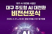 (포탈뉴스통신) 대구광역시는 2월 27일 호텔 인터불고 대구에서 ‘대구 주도형 AI 대전환 사업단 출범 및 비전 선포식’을 개최한다. 이번 행사에는 대구시를 비롯해 대구경북지방중소벤처기업청, 중소벤처기업진흥공단, 사업 수행기관 등 100여 명이 참석해 지역산업의 인공지능(AI) 전환 비전과 추진 방향을 공유할 예정이다. ‘대구 주도형 AI 대전환 프로젝트’는 AI 활용률이 낮은 지역 중소기업의 AI 도입 및 활용을 지원하기 위한 중소벤처기업부 공모사업으로, 지난해 10월 선정됐다. 사업은 ▲AI솔루션 도입·활용 ▲AI활용 인프라 구축 ▲AI 인재 양성 ▲AI 성장 서포터 운영 등 4대 핵심 분야를 중심으로 추진된다. 이를 통해 지역기업 전반에 AI 솔루션을 확산하고 기업 경쟁력을 높인다는 계획이다. 이날 행사는 사업단의 공식 출범과 함께, 산업현장의 인공지능 활용을 보편화해 대구를 ‘AX(AI 전환) 선도도시’로 도약시키겠다는 비전을 선포하는 자리다. 또한 사업 총괄책임자인 경북대학교 김현덕 교수가 ‘대구 주도형 AI 대전환 프로젝트의 현재와 미래’를 주제로 사업 실행 전략을 발표한