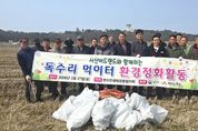 (포탈뉴스통신) 서산시 부석면 창리, 마룡리, 간월도리 등 3개 마을 주민들로 구성된 천수만 생태관광협의회(회장 : 김만석)에서 매년 천수만 독수리 도래지에 대한 정화활동을 실시하고 있다. 서산시에 따르면, 27일 천수만 생태관광협의회 위원과 서산버드랜드 직원 등 20여명은 부석면 창리 독수리 도래지역 정화활동을 통해 고라니 뼈와 쓰레기 등 250kg이 넘는 폐기물을 처리했다고 밝혔다. 독수리 서식지에는 겨우내 서산버드랜드와 생태관광협의회에서 200여 마리의 고라니 폐사체 등을 먹이로 제공하여 뼈와 껍질이 산재해 있었고, 그동안의 강풍으로 인하여 많은 쓰레기가 농경지에 날아든 상황이었다. 천수만 생태관광협의회에서는 지난해부터 지역 주민들이 자체적으로 독수리 먹이터의 청소활동을 시작했으며, 서산버드랜드에서도 적극적으로 동참하면서 연례행사로 이어지고 있다. 김만석 천수만생태관광협의회장은 “지난 겨울 독수리는 우리 지역의 자랑이었다”며, “더 많은 철새들이 우리 지역을 찾아올 수 있도록 주민들의 힘을 모으겠다.”라고 밝혔다. 심영복 서산버드랜드사업소장은 “앞으로도 지역 주민과 함께하는 철새