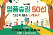 (포탈뉴스통신) 산림청은 숲길을 활용한 국민의 여가 활성화 및 지역경제 활성화를 위해 ‘2026년 명품숲길 50선 완주 인증제’를 11월 15일까지 운영한다고 13일 밝혔다. ‘명품숲길 50선 완주 인증제’는 2025년 첫 도입 이후 국민의 높은 관심과 참여로 총 23명의 완주자를 기록했으며, 올해는 2년 차를 맞아 참여 기회를 확대하고 이용 편의성을 개선했다. 이번 인증제는 스마트폰 앱 ‘모바일 스탬프 투어’를 활용한 GPS기반 온라인 인증과 숲길 현장 스탬프를 활용한 오프라인 인증 방식을 병행해 누구나 쉽게 참여할 수 있도록 운영한다. 참여자가 50개소를 모두 완주하면 앱을 통해 전자 인증서가 자동으로 발급되며, 실물 인증서는 모바일 앱을 통해 별도로 신청할 수 있다. 전국 50개 명품숲길을 모두 완주할 경우 산림청장 명의의 완주 인증서와 기념품이 제공된다. 앱 설치 방법 등 인증제에 대한 자세한 사항은 산림청과 숲나들e 누리집을 통해 확인할 수 있다. 조영희 산림청 산림복지국장은 “명품숲길 완주 인증제는 국민이 숲길을 보다 적극적으로 경험하고 가까워지는 계기이다.”며, “이번 기회