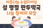 (포탈뉴스통신) 서울 중구는 설 명절을 앞두고 오는 4일부터 14일까지 중구1인가구지원센터에서‘설맞이 특별 프로그램’을 운영한다. 이번 설맞이 프로그램은 1인가구의 특성과 취향을 반영해 ▲소셜다이닝 ▲전통 민속놀이 ▲소모임 활동 ▲원데이 클래스 등 4가지로 구성했다. 1인가구와 이웃이 소통하며 따뜻한 명절 분위기를 함께 느낄 수 있도록 하자는 취지다. 먼저, 소셜다이닝 ‘설 명절 만두떡국 나눔’은 요리 체험과 지역사회 나눔 활동을 연계해 진행된다. 2월 11일과 12일 참여자들이 정성껏 만든 만두떡국 키트와 덕담 카드는 13일 관내 거주 취약 1인가구 20세대에 전달될 예정이다. 또한, 평소 주말 보드게임을 즐기던 소모임 ‘제이의 시간’은 7일과 14일 명절의 정취를 만끽할 수 있는 ‘설맞이 전통놀이’로 꾸며진다. 참여자들은 윷놀이, 투호, 팽이 등 다양한 민속놀이를 즐기며 각자의 명절 추억을 공유하고 소통하는 시간을 갖는다. 이 밖에도 한국 전통의상 종이접기, 소원 카드 작성 등 소소한 재미를 느낄 수 있는 활동을 진행하며, 발렌타인데이와 연계한 ‘초콜릿 만들기’ 원데이 클래스를 통해 참여자 사이