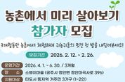 (포탈뉴스통신) 공주시는 예비 귀농·귀촌인이 농촌 생활을 직접 체험하며 정착을 준비할 수 있도록 돕는 ‘농촌에서 미리 살아보기’ 프로그램 상반기 참가자를 오는 2월 26일까지 모집한다고 밝혔다. 이번 프로그램은 4월부터 6월까지 3개월간 정안면 소랭이마을에서 운영된다. 참가자들은 영농 실습과 지역 주민과의 교류, 농촌 문화 체험 등 다양한 활동에 참여하며 귀농·귀촌 생활을 미리 경험하게 된다. 지난해에는 총 6가구가 참여했으며, 이 가운데 2가구는 공주시 귀농·귀촌인의 집에 입주했고 1가구는 실제로 공주시에 전입해 안정적인 정착을 시작했다. 프로그램 기간 동안 주거 공간은 무료로 제공되며, 월 15일 이상 참여한 참가자에게는 매월 30만 원의 연수비가 지원된다. 모집 대상은 만 18세 이상 65세 이하의 타 도시 거주자로, 프로그램 최초 참가자(타 지방자치단체 참여 이력 포함), 구직급여 수급자, 가족 단위 참가자, 귀농·귀촌 교육 10시간 이상 수료자는 우선 선발한다. 특히 공주시 자매도시인 서울 관악구·송파구, 인천 계양구, 경기 구리시·부천시·이천시·평택시 거주자에게는 가점을 부여