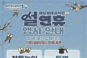 (포탈뉴스통신) 시흥시는 설 명절을 맞아 시민과 방문객이 뜻깊은 시간을 보낼 수 있도록 오는 2월 14일부터 18일까지 해양생태과학관에서 설 연휴 특별 행사를 운영한다. 해양생태과학관은 설날 당일인 2월 17일을 제외한 연휴 기간 정상 운영되며, 연휴 이후인 2월 19일은 휴관한다. 연휴 기간 방문객들은 해양 생태 전시 관람과 함께 명절 분위기를 느낄 수 있는 다양한 체험 프로그램을 즐길 수 있다. 특히 2월 14일부터 18일까지는 방문객 누구나 참여할 수 있는 특별 마술공연이 진행된다. 공연은 해양생태과학관 2층에서 오후 1시와 3시, 하루 2회 운영되며, 해양 전시 생물 관람과 교육 프로그램과 연계해 색다른 즐거움을 선사할 예정이다. 이와 함께 설 명절의 정취를 느낄 수 있는 전통 놀이 체험 공간도 마련된다. 해양생태과학관 3층 기획전시실에서는 윷놀이, 투호 던지기, 제기차기 등 설날을 대표하는 전통 놀이를 해양생태과학관 운영시간인 오전 10시부터 오후 6시까지 누구나 자유롭게 체험할 수 있도록 운영할 예정이다. 시 관계자는 “설날 당일을 제외한 연휴 기간 해양생태과학관을 정상 운영하며, 방문객